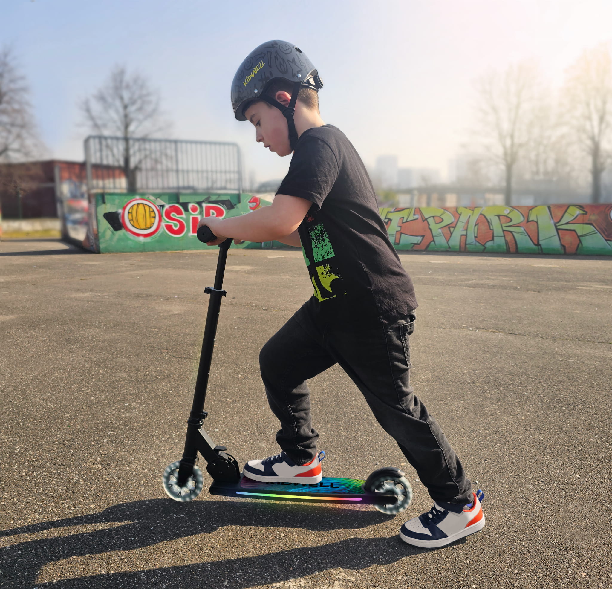 Aż 20 trybów świetlnych w drążku kierownicy oraz podeście. Dodatkowo trzy naklejki do wyboru na podest dające swobodę w personalizacji produktu według upodobań użytkownika.