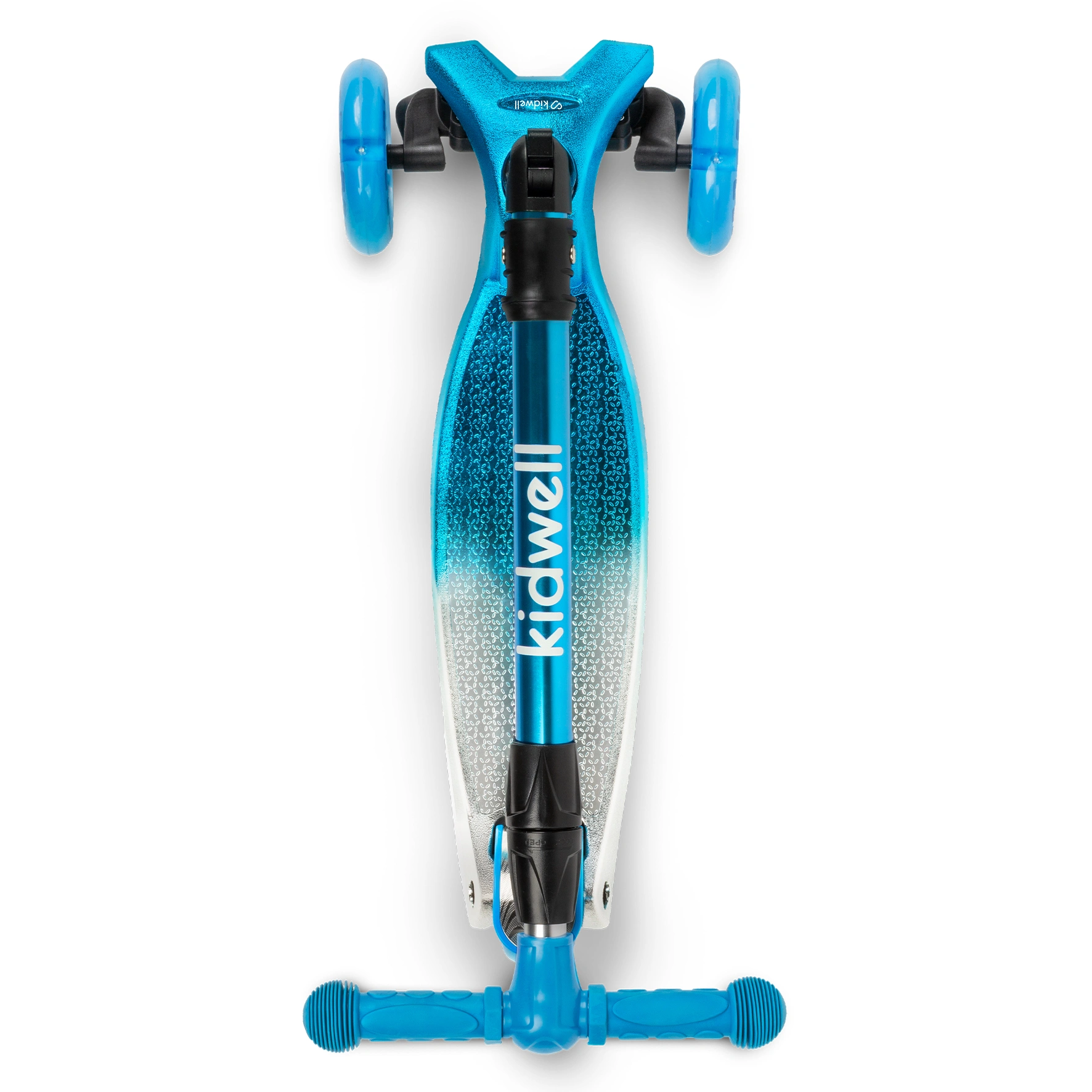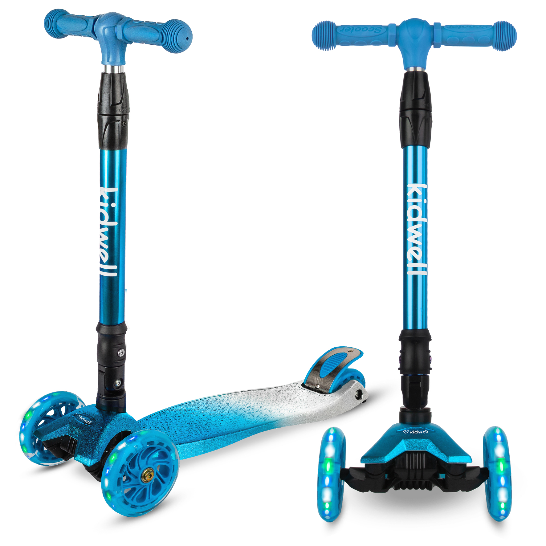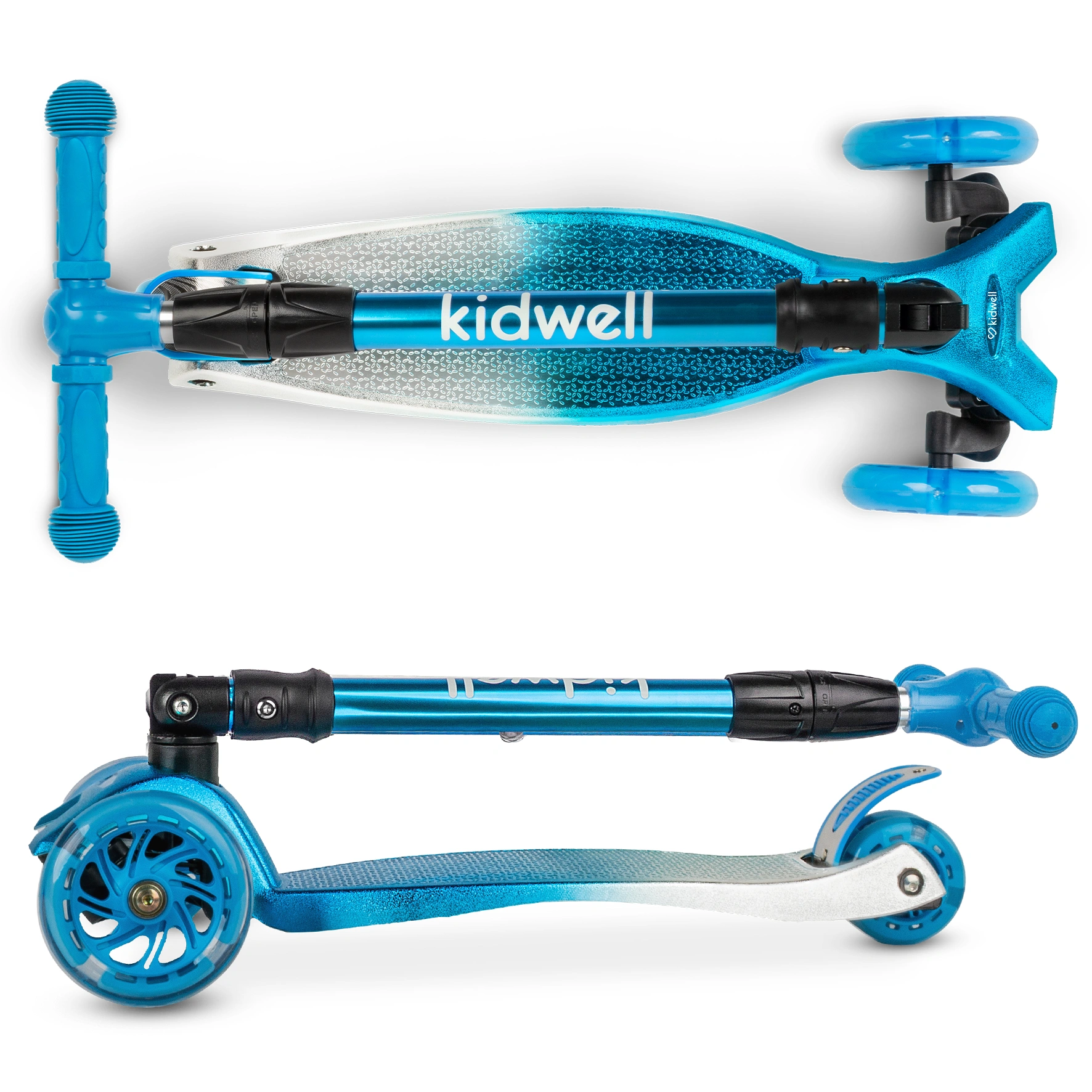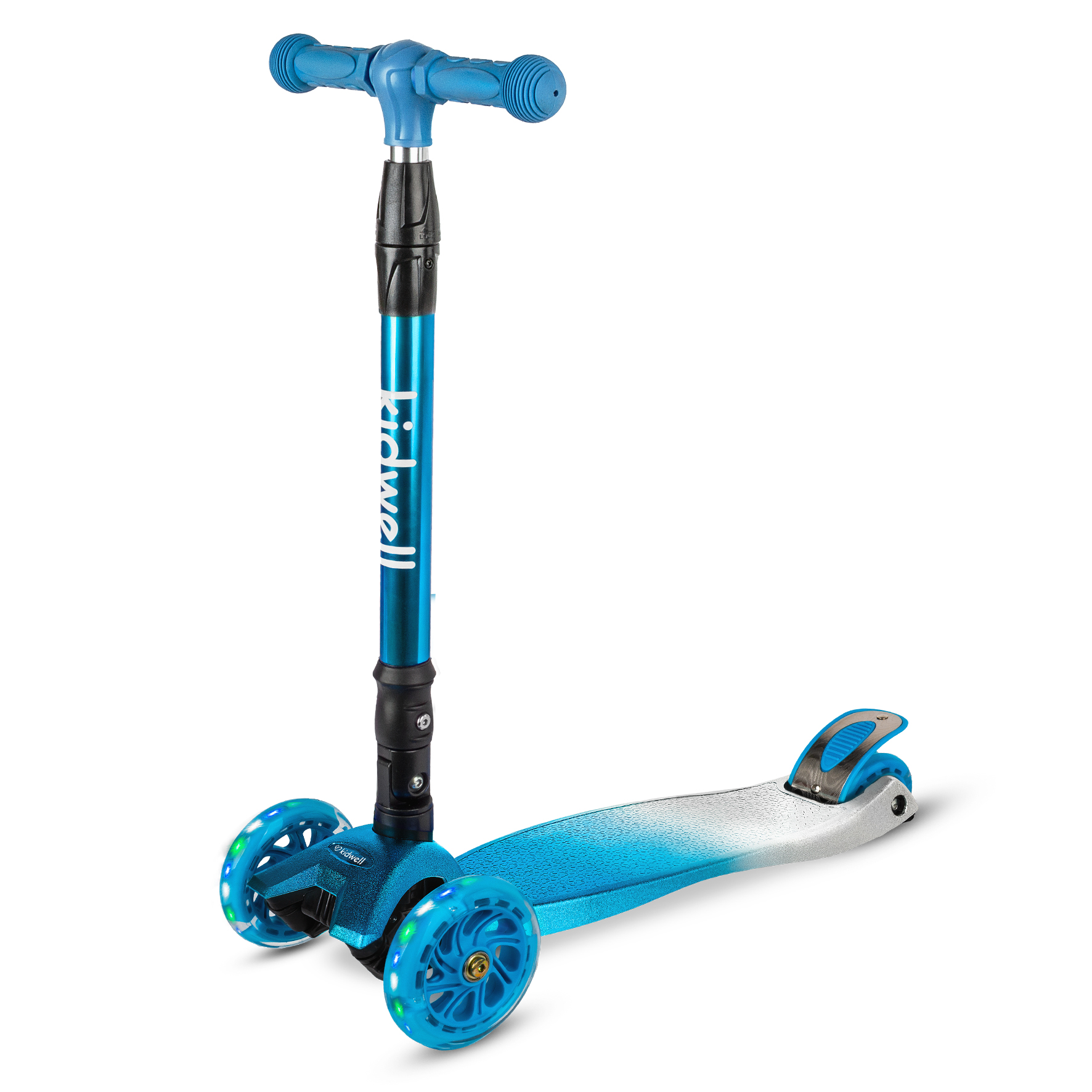 - Materiały: Aluminiowa kierownica, plastikowy podest, poliuretanowe koła z diodami LED