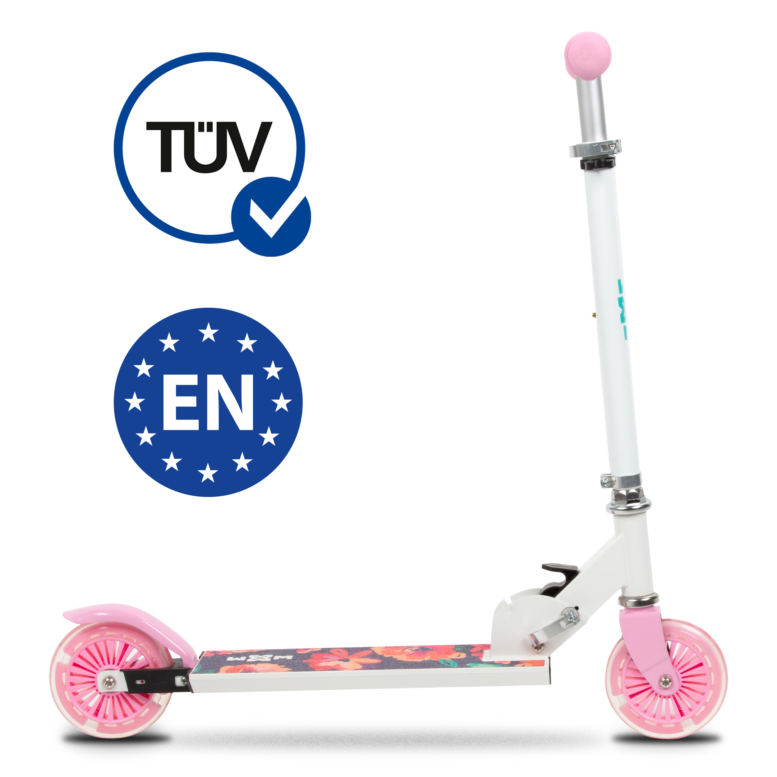 Hulajnoga SKIPO spełnia wszystkie wymogi bezpieczeństwa, jest zgodna z normą EN-71 oraz posiada certyfikat TÜV Rheinland.