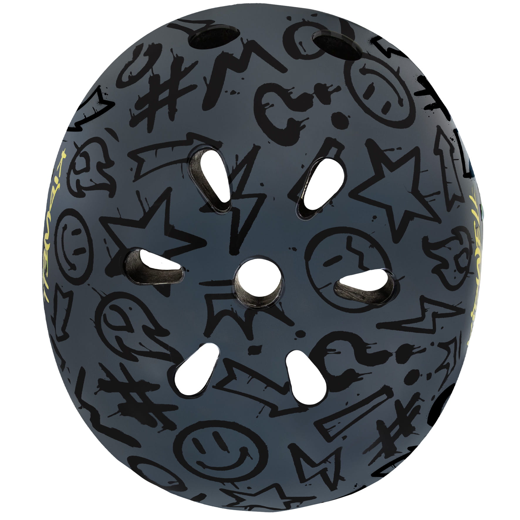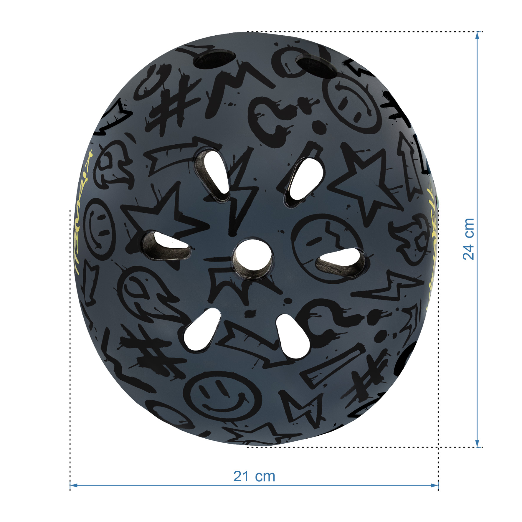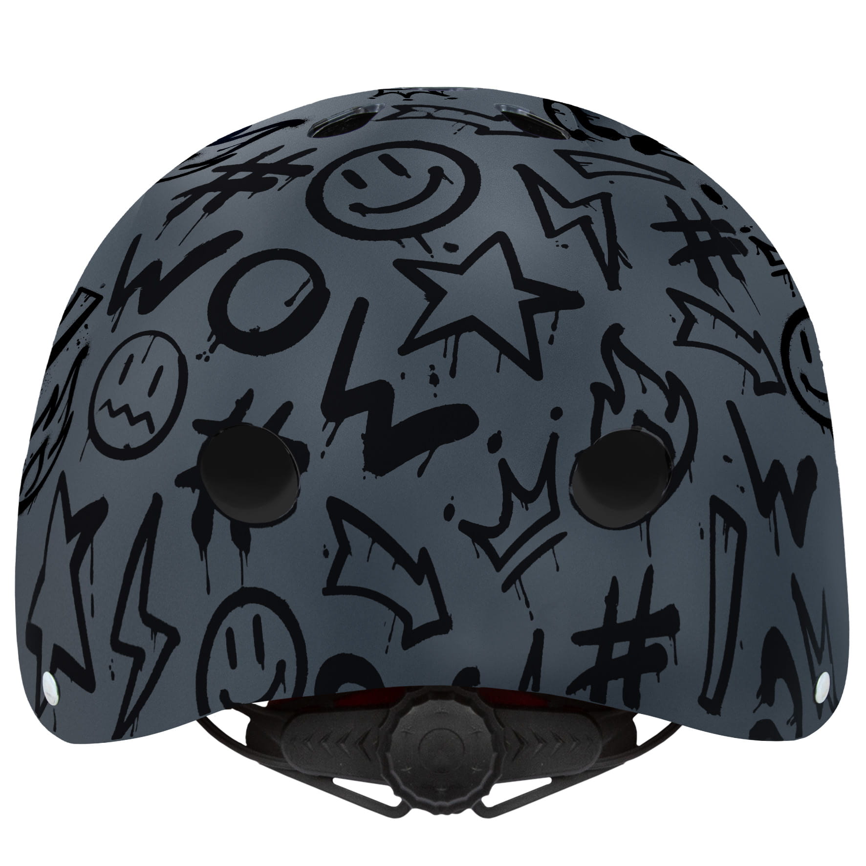 Nowoczesny wzór z motywem graffiti od razu przyciąga uwagę i sprawia, że kask staje się ulubionym dodatkiem do każdej zabawy na rowerze czy hulajnodze. Sympatyczne dinozaury wywołują uśmiech i sprawiają, że dzieci same chętnie zakładają kask przed wyjściem na dwór.