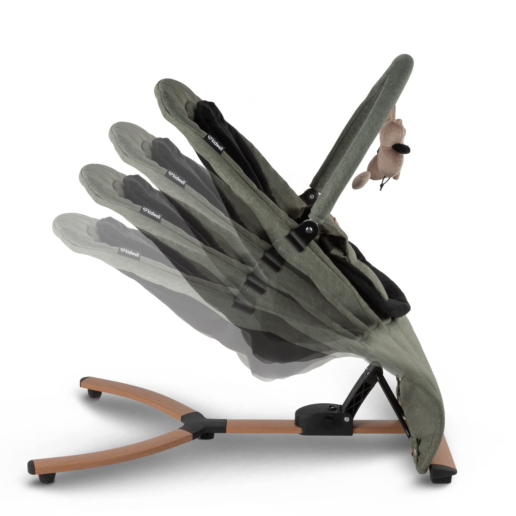 Leżaczek-bujaczek Kidwell Rubi montuje się w kilka chwil – bez użycia narzędzi. Zdejmowany pokrowiec i miękka wkładka nadają się do prania w pralce, dzięki czemu utrzymanie świeżości i higieny jest naprawdę proste.