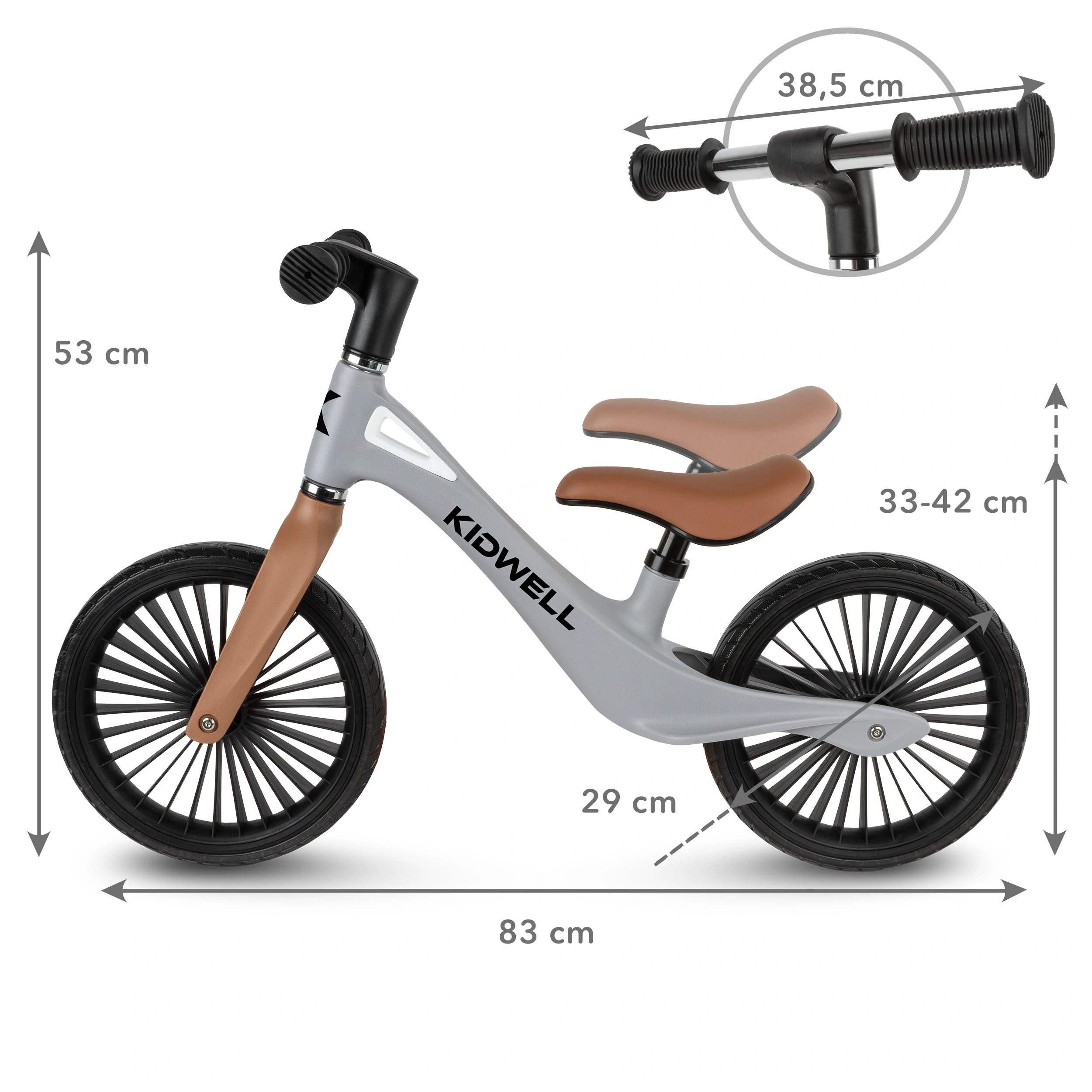 Ergonomiczne siodełko z miękkim wypełnieniem zapewnia wysoki komfort podczas jazdy, a nowa konstrukcja regulacji wysokości sprawia, że rowerek Kidwell NIX rośnie razem z dzieckiem, dostarczając kilka lat ekscytującej zabawy.
