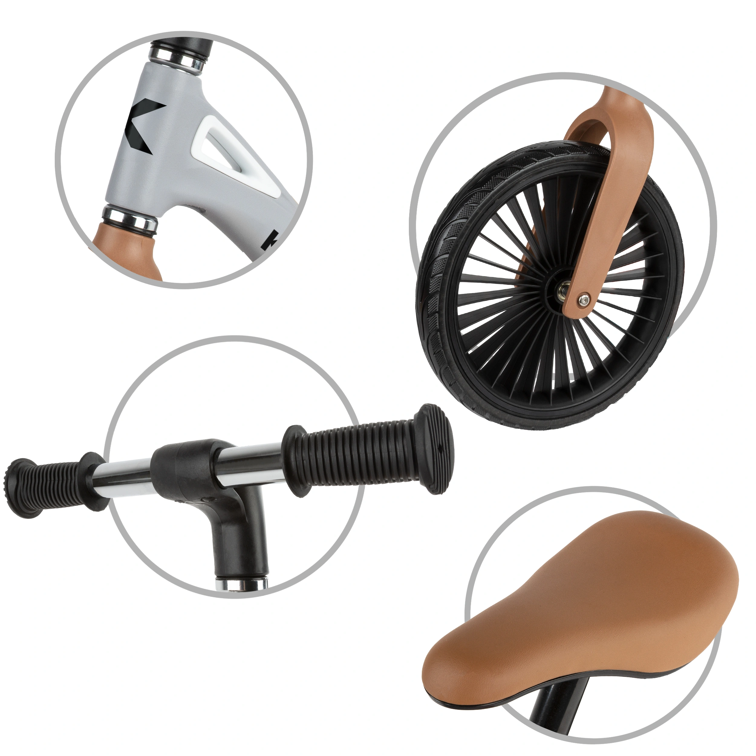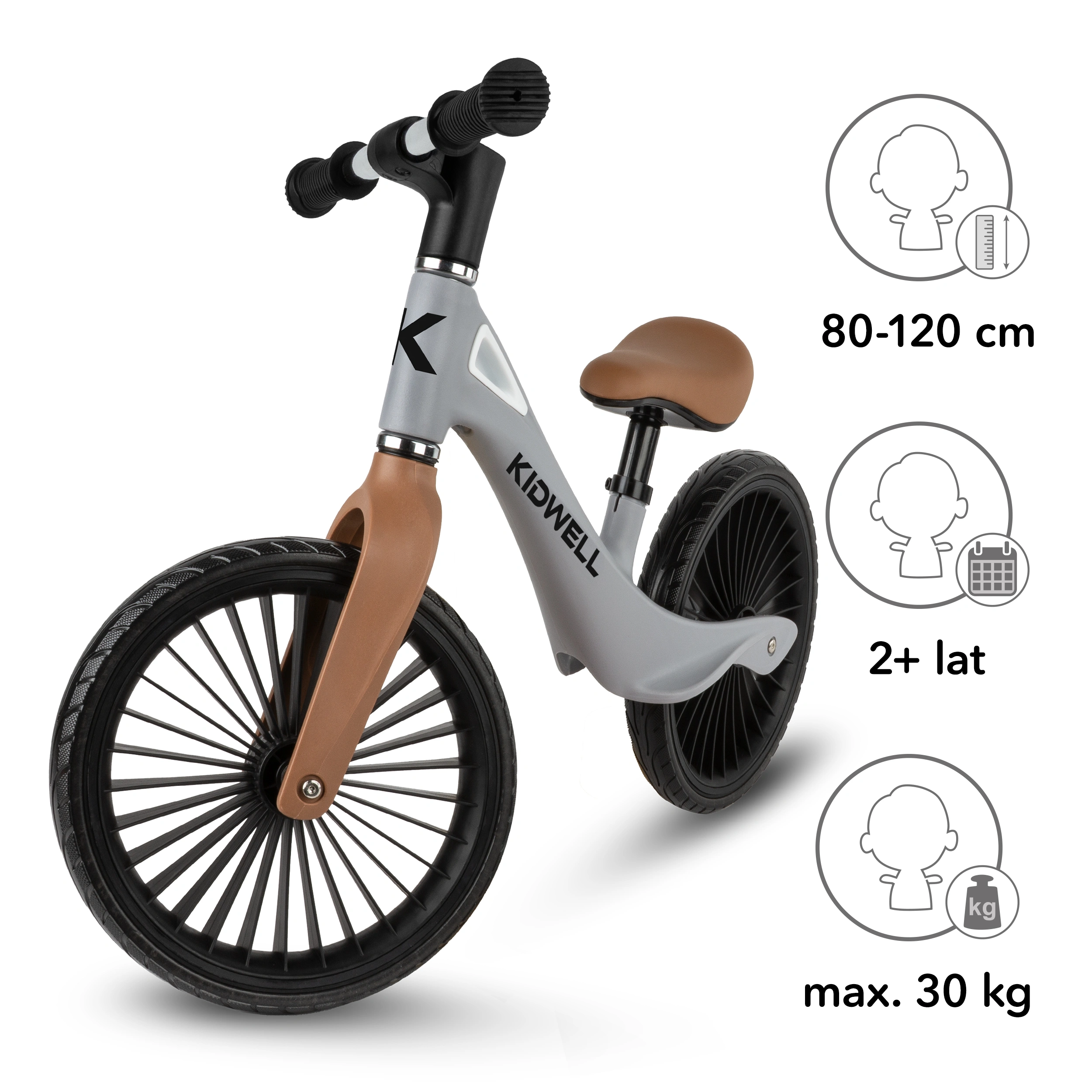 Poznaj NIX Gray-Brown – rowerek biegowy, który łączy nowoczesny design, efektowne felgi i lekką, wytrzymałą ramę z nylonu. Dzięki dopracowanej konstrukcji dziecko cieszy się płynną jazdą, a rodzic z łatwością przenosi rowerek, gdy mały rowerzysta zdecyduje się na odpoczynek. To idealny pierwszy pojazd, który pomaga maluchowi rozwijać równowagę, koordynację i motorykę dużą, przygotowując go do jazdy na tradycyjnym rowerze.